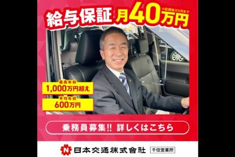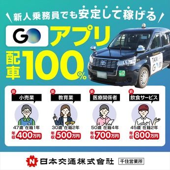 仕事内容 \\\\||||||||||//// 同じタクシー乗務員でも、 ここまで差が出る! 【業務内容は他社と同じ】──なのに、 手にする給料は圧倒的に違います! ////||||||||||\\\\ 【月収57万円も目指せる高収入!】 タクシー業界で売上No.1を誇る 『日本交通』だからこその高待遇! 【日本交通最大規模の営業所!!】 圧倒的集客力と安定収入を実感して下さい! ◎昼過ぎ出勤&3時間休憩 ⇒午前中は自由!ゆったり出社できます ⇒休憩も好きなタイミングでOK! ◎年3回の賞与あり/事前シフト制で安心 ■━━━━━━━━━━━━━━━━━■ 【仕事内容】 タクシー乗務員としての業務全般 =============== 同じ運転なのに、なぜ今までこの職場を 選ばなかったのか──。 その違いを、ぜひ実感してください! =============== 【アピールポイント】 \これまでの集客の苦労、すべて解消!/ 【とにかくお客様が多いから、 稼げるのが当たり前】 ■配車アプリ『GO』で予約が自動で届く! ⇒自分で探さず、乗せるだけでOK! ⇒空車時間が圧倒的に少ない! ■日本交通グループならではの集客力 ⇒専用乗り場の数が段違い!