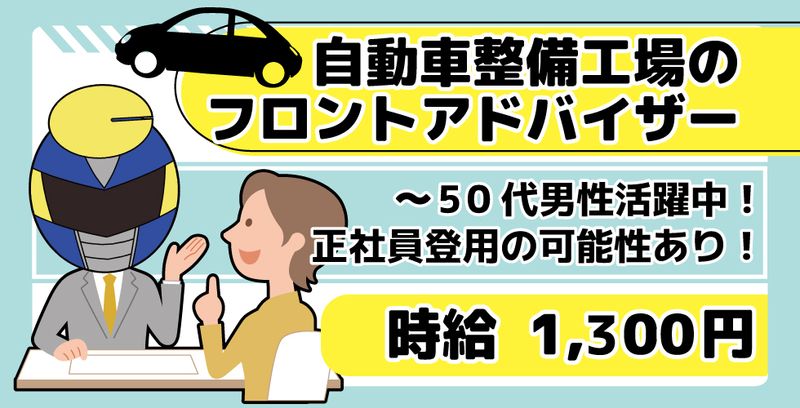 仕事の内容 【車好き必見×高時給1300円】 \外車ディーラーでのフロントアドバイザー募集!/ ≪お仕事内容≫ 外車販売店の整備部門で、フロント対応を行うお仕事です(^^)/ ご来店されたお客様への対応を中心に、車検や修理に関するご案内、 整備士への取次ぎ・連絡などを担当します。 専門的な整備作業はなく、整備士とお客様をつなぐ役割なので、 車に興味がある方にぴったりです(*^-^*) ≪勤務条件≫ 雇用形態:長期派遣 勤務地:福井県福井市二の宮 勤務時間:9:00~18:00(実働8時間/休憩60分) 休日:シフト制・週休2日 └ 定休日:月曜日+平日1日 └ 土日祝は交代で休み取得可 残業:なし ≪こんな方にぴったり!≫ ・車に関わる仕事がしたい方 ・接客や人と話す仕事が好きな方 ・安定した職場で長く働きたい方 ・パソコンの基本操作ができる方 ≪職場の雰囲気≫ 20代~50代の男性スタッフが中心に活躍中(^^♪ 地元の優良企業で、落ち着いた雰囲気の職場です。 予定がある日はシフト調整もしやすく、働きやすさが整っています。 ≪待遇・福利厚生≫ <給与・手当> ・時給 1,300円 ・交通費支給 <職場環境> ・無料駐車場完備 ・マイカー通勤可 ・休憩室完備 ・近隣にスーパー、飲食店、ドラッグストアあり <設備・制度> ・制服貸与 ・休憩室あり ・正社員登用あり ・受動喫煙対策あり(喫煙室設置) ≪ひとこと≫ 車が好きな方、接客経験を活かしたい方におすすめのお仕事です。 限定1名募集のため、気になる方はお早めにお問い合わせください(^^)/ ★本求人にご興味をお持ちの方は、応募する!より必須項目記載の上、 お問合せ下さい。 (お電話でのお問合わせ先:0120-67-3244 ※平日9時00分~18時00分)