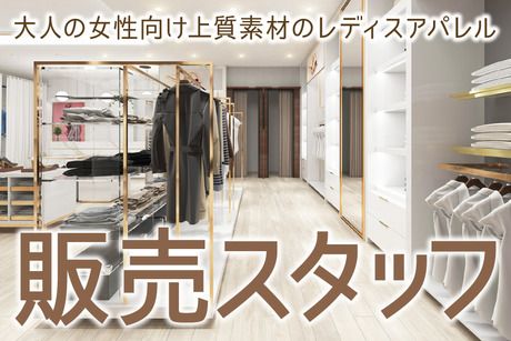 仕事内容 大人の女性向け上質なレディスアパレルの販売 レディスアパレル店での販売スタッフ業務をお願いします。 【業務内容】 ・接客 ・販売 ・在庫管理 ・商品補充 ・ラッピング など 取り扱いブランドのこと 上質でしなやかな着心地は、こだわりぬいた素材や 細部にまで配慮されたカッティングから。 そして女性を優雅に、かつ華やかに彩る「美しさへの配慮」が 大人の女性に愛されています。 “本物の上質さ”にこだわる人にこそオススメしたいブランドです 店舗ディスプレイもお任せします。 アパレル販売といえば、 最新アイテムをディスプレイして… なんてイメージありませんか? もちろん丁寧に教われます。 あなたのセンスを活かしてください