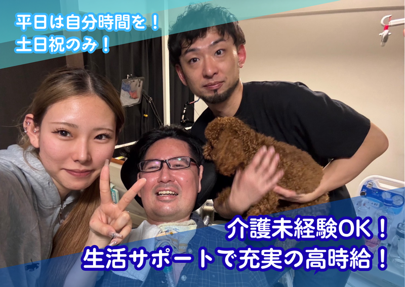 仕事内容 <居宅介護のお仕事> ✨利用者様宅には直行直帰でOK ✨介護というより生活のお手伝い! ✨女性スタッフ多数活躍中! ✅身体介護 ✅食事の介助 ✅外出支援 など ご自宅で自立した生活ができるように、食事や外出をお手伝いするのが主なお仕事です。 女性スタッフ多数活躍中! 家事スキルなども活かせます◎ 実務未経験の方も大歓迎です。 ⭐平日働きたくない方へ 土日祝のみ勤務したい方も大歓迎! 無理なく週2日程度の勤務でスタートできます。 平日に家事や育児などのやりたいことがある方にもオススメ!
