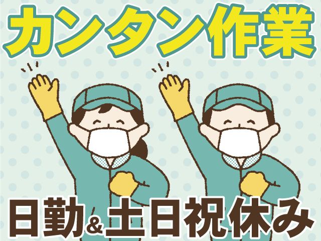 仕事内容 人気の日勤&土日祝休み!長期休暇あり! プライベート時間もしっかり確保できます! <オススメポイント> ・未経験から活躍できるお仕事! ・30代~60代の男性活躍中! ・空調完備の快適な職場! ・仕事がカンタンなので楽々ストレスなし! <お仕事内容> カンタンな金属製品の拭き上げ作業をお願いします。 目の前に製品が運搬されてくるので、 薬品(シンナー)を染み込ませた布で拭き上げていきます。 工場内の清掃などの付随業務もお願いします! ※ヘルメットやマスクなどの作業備品は支給いたします。 難しい作業・複雑な作業は一切なし! ストレスなくお仕事ができるはずです! フォロー体制充実! まずは先輩と一緒に作業していただきお仕事の流れを学んでいただきます。 未経験者の方でも安心してスタート出来ます! <こんな方が活躍中!> ・土日休みのお仕事をお探しの方 ・安定した職場で働きたい方 ・仕事もプライベートも充実させたい方 ・初めてのお仕事デビューの方 ・「派遣は初めて!」 「アルバイト・パートしか経験がない…」という方 ・モノづくりに興味のある方大歓迎! <週払い&前払い制度あり> お給料日前や入職前も安心!お気軽にご相談ください。 <派遣が初めての方も安心!> 面接から入社・入社後まで、同じ担当者がサポートいたします。 働きたい時間帯や休日の希望など、ぜひお気軽にご相談ください。