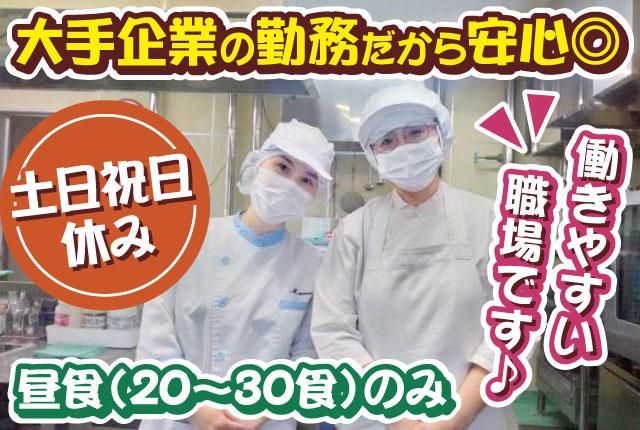 【急募!20食~30食ランチのみ/土日祝日休み/40代50代活躍中!】★車通勤OK★ ☆勤務先は大手企業内社員食堂でランチ20~30食の予約制 落ち着いて丁寧な調理ができます。家庭料理の延長でできるメニューが中心で、レシピも完備 ☆少人数のあたたかい雰囲気で、スタッフとの協力体制も充実 ☆土日祝はお休みなので、家庭も自分時間も大切にできます! ☆業務が早く終わった日は定時前の帰宅も可能 ☆車通勤可なので、天候に左右されず通勤もラクラク ☆店長業務、調理業務で困った事があった際は本社でしっかりサポート致します 「ひとりで抱え込まない体制」が整っているため、安心して長く続けられます!
