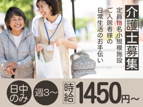 定員18名小規模施設★人気のグループホーム♪高時給1450円|週3日~相談OK|早・遅番のみ相談可能