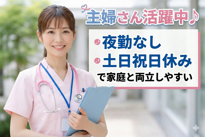 求めている人材 ヽヽ 【必須】看護師免許 ☆。・ //  ̄ ̄ ̄V ̄ ̄ ̄ ̄ ̄ ̄ ̄ ̄ ̄ ̄ ̄ ✅未経験者OK ✅経験者歓迎 ✅主婦(夫)活躍中 ✅ブランク明けOK ✅久しぶりのお仕事復帰を応援 ┏━━━━━━━━━━━┓ ┃ こんな方にピッタリ ┃ ┗━━━━━v━━━━━┛ ・バタバタした現場を離れたい ・一人ひとりと向き合いたい ・医療スキルを活かし続けたい ・土日休みの生活を手に入れたい ・安定法人で長く働きたい アルバイト・パートとして、 “無理なく続けられる看護”を 始めたい方におすすめです◎