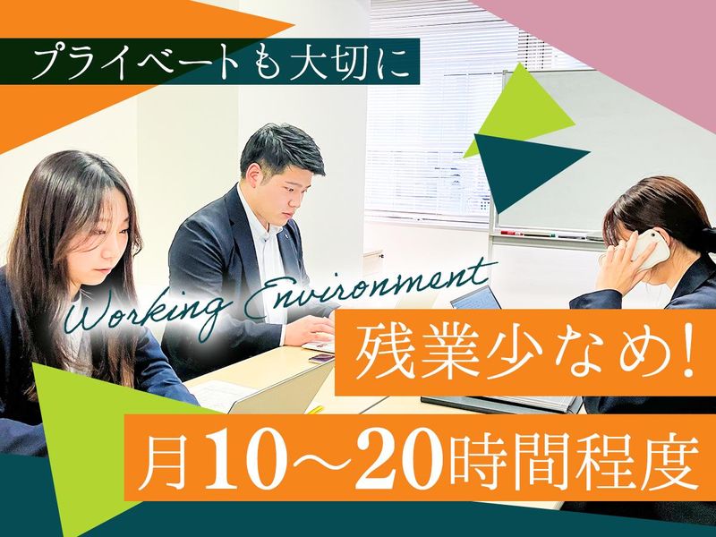 職場環境 【基礎から学べるので安心!】 経験ゼロからチャレンジした先輩がほとんど。中途入社でも飛び込みやすい環境です!当社で社会人デビューしたメンバーもいます。充実した研修があり、わからない事も聞きやすい!新人さんが安心して働ける環境があるのは当社の魅力です。