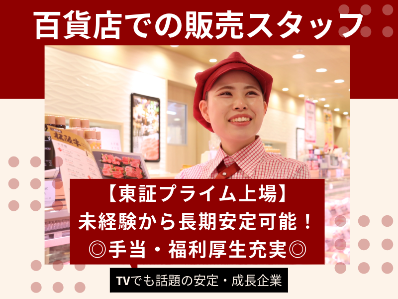 仕事内容 【新着】正社員大募集! - <各種手当・福利厚生が充実> 時間も収入も安定した生活が可能です - 《業務内容》 「松阪牛」やオリジナル牛「柿安牛」等の ブランド牛をメインに上質なお肉を 扱うデパ地下の精肉店で、 正社員の販売スタッフとして接客を行います。 ゆくゆくは商品発注やマネジメント業務などもお任せします。 【変更の範囲】 会社の定める業務 ■接客業務 平日は8割が常連のお客様。 土日は初めてのお客様も 多くいらっしゃいます。 客層は主婦の方が多く、 落ち着いてお話が出来る方ばかり。 「寒いからお鍋にしようと思うけど どのお肉がおすすめですか?」 「このお肉はどうやって 食べるのが美味しい?」など、 ご質問を頂き、ご予算等に応じて アドバイスすることも。 お選び頂いた商品を 計量・お包みしてお渡しします。 知識は入社後に少しずつ 丁寧にお教えします! ご安心下さい。 《未経験から成長できる》 入社後は、店舗で 商品や接客の 研修を行います。 一人一人に合わせて 進めていくので、 お肉屋さんや接客の 知識・経験が無くても大丈夫。 人との会話やコミュニケーションを 大切にできる姿勢があれば、 学歴や経験も不問です。 慣れてきたら、意欲に応じて スタッフの指導やシフト作成なども お任せしていきます。 1~2年でチーフへの キャリアアップも可能。 無理をし過ぎず、 チャレンジできる環境なので 長く続けるスタッフが 多いのが自慢です! <アピールポイント> - 東証プライム上場の老舗<柿安本店> 手厚い待遇と、成長し続ける環境、 それが安心して長く働ける理由。 - 明治4年に創業以来、 150年以上も安定した経営を 続けている当社。 その秘訣は、常に時代を 先読みしていく積極性と、 現場を支える従業員への 手厚い待遇にあります。 毎年の昇給・賞与や 役職手当の他にも例えば ライフステージに合わせて ・結婚、出産、小中学校入学祝金 ・子一人につき月1万円の手当 など、子育て中の方への支援も 充実しています。 自分自身のスキルや キャリアUPを目指す方にも ・能力により早い段階での昇格 (店長/マネージャー等) ・役職手当、家族手当 など充実した福利厚生を ご用意しており、 あなたの志向に応じて 働きやすい・続けやすい 環境整備に取り組んでいます。 勤務シフトも希望が 通りやすいので、 趣味や家族の予定に合わせて 連続休暇取得も可能。 社員が仕事もプライベートも 充実できてこそ、 お客様にもご満足頂ける お店作りができると考えています。 若手や女性の管理職も 年々増えていますよ!