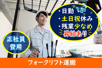 【土日祝休×昇給有】資格が活かせる!フォークリフトでの運搬作業経験者大歓迎!!社員登用も有◎