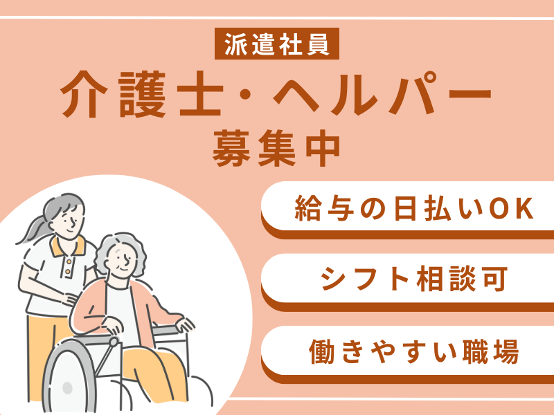 PR・職場情報 グループホームの介護士さんを探しています。 初めて派遣社員として働く方も、派遣会社や就業先を変えたい方も大歓迎! 専属の担当者が親切丁寧にサポートします! \弊社最大90%利用可能な日払い制度あり!/ 【日払い・週払い制度】 最速当日中の申請・振込が可能です! お振込み額は実績の90%を利用できます。 ※規定あり *********************** 派遣社員として働くあなたを本気で応援! あなたの「働きがい」を大切にお手伝いします! *********************** ◇◆当てはまる方、ぜひご相談ください!◆◇ ・今の勤務先の時給や条件に不満がある… ・ブランクがあって不安だ… ・キャリアアップしたい… ・自分にあった勤務先が分からない… ・人間関係で困ってます… ・福利厚生が充実しているところがいい… ・プライベートも大事にしたい… ・今の派遣会社に不安がある… □週3日でお仕事をお探しの方 □車通勤をしたい方 □資格を活かしてお仕事したい方 など、お仕事をお探しのそれぞれの方に合う事業所をご提案叶うよう努めております。 <専属の営業担当が二人三脚でサポートさせていただきますので、お気軽にご応募ください!> 求人の特徴 ◇◆グループホームの特徴◆◇ <特徴①:家庭的な雰囲気> グループホームは定員9人以下(1ユニット)と少人数で、利用者との距離が近いです。 <特徴②:認知症の方が対象> 声かけや見守り、臨機応変な対応が求められます。 求人ポイント 社員登用あり,昇給あり,高収入・高月給,交通費支給,即日勤務OK,週4日からOK,長期,フリーター歓迎,給料前払いOK,短期,学歴不問,残業月20時間以内,転勤なし,経験者歓迎,週払いOK,有資格者歓迎,月1シフト提出,研修あり,社会保険完備,50代以上応募可,シフト制,即日払いOK,40代以上応募可,履歴書不要,週3からOK,週5からOK