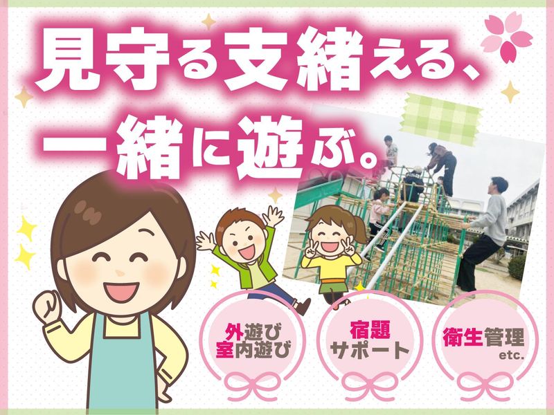 求めている人材 ◇週3日~勤務できる方 ◇無資格・未経験OK♪ ◇扶養内勤務OK ◇女性スタッフ活躍中! <以下の資格を持っている方歓迎> ◎学童保育指導員の資格をお持ちの方歓迎 ⇒給与優遇します! ◎教員免許をお持ちの方歓迎 \こんな方にピッタリです/ ・子どもと関わる仕事がしたい方 ・誰かの役に立つ仕事にやりがいを感じる方 ・落ち着いた環境で長く働きたい方 ・子育て経験を活かして働きたい方 ・チームで協力しながら働くのが好きな方 ・子どもが好きな方