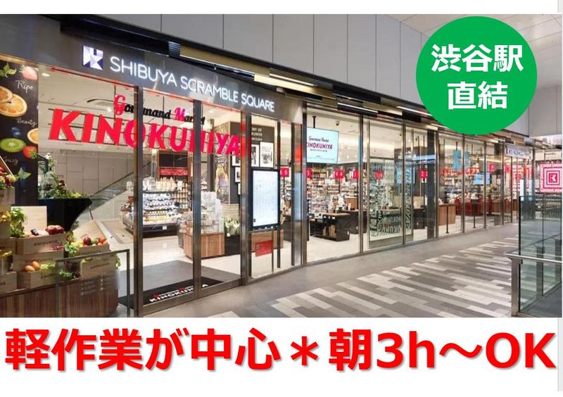 仕事内容 ✨朝~午前の短時間!✨渋谷スクランブルスクエアの紀ノ国屋/KINOKUNIYAでのお仕事。バックルームでの作業が中心で初心者でも出来る軽作業です。 ╲この求人のポイント/――――― ・渋谷駅直結で通勤ラクラク ・コツコツ作業が好きな方にピッタリ ・8時から3時間でも歓迎 ・週2日~安定して入れます ・土日祝は時給アップ! ・幅広い方が活躍中 ―――――――――――――――― ✅仕事内容 ✨軽作業(パック・袋詰め作業など) ・入荷した野菜・フルーツを、 袋や容器に分けてパッケージ └りんごは3個ずつ ピーマンは10個ずつ…etc. └ほか、カットフルーツ作りも行います どれも皆で行うのでやりながら覚えられます! ✨売場へ品出し オープン時間に合わせて商品を陳列 開店後は補充や商品チェックを行います ※店内で「〇〇はありますか?」と お客様に尋ねられることもあります。 その際は親切にご案内して下さいね。 社員も一緒に働くので安心です。 ―――――――――――――――― ✅渋谷駅直結「渋スク」 JRや銀座線なら改札からすぐ! 渋谷スクランブルスクエアB1が まるごと当店です。 ひときわ目を引くカラフルな 野菜&フルーツコーナーの担当を 多数募集します! ✅週2日以上、3時間もOK! お仕事は、朝8時からスタート。 ~11時、~12時など可能ですので ご都合をお聞かせください。 20~50代まで幅広く在籍し 自分に合った働き方ができる職場です。 学生の方は試験期間など考慮します。 ✅土日祝は時給1313円~ 時給アップがあるのでお得に稼げますよ! ✅お店の名前の「グルマン」とは? ”食いしん坊”という意味です。 店内はこだわりの食品を揃えたショップと カフェ、自家製ベーカリーで構成し ほかにない「美味しい!」を発信しています。 仲間が多くて雰囲気の明るい職場で 一緒に楽しく働きませんか? Web・お電話で気軽にご応募ください。