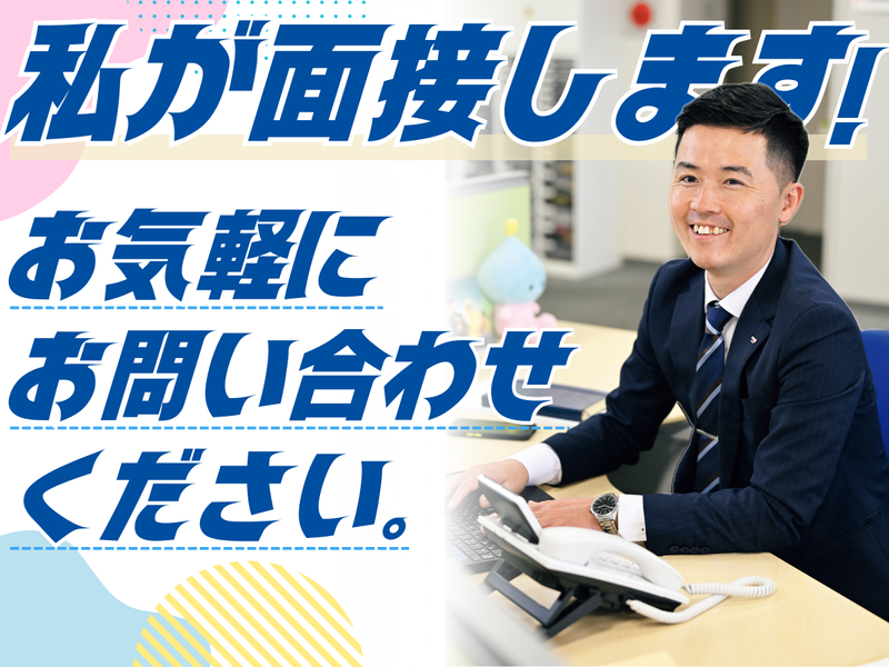 選考プロセス ▼書類選考 応募フォームからのエントリー内容にて実施。 ▼面接 面接はご希望の拠点にて、書類選考後1週間以内に行う予定です。 ※面接には履歴書をご持参ください。 ▼内定 書類選考から内定までは約2~3週間が目安です。 ※面接日・入社日はお気軽にご相談ください。 ※スグに転職できない方もご相談ください。 【応募後の連絡】 応募いただいた方全員に、7営業日以内にご連絡いたします。