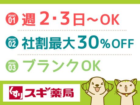 仕事内容 <仕事内容> 薬剤師として以下の業務をお願いします。 ・調剤業務全般 ・調剤薬の管理 ・一般医薬品の販売 ・お客様対応 など ドラッグストア勤務なので その他にも健康食品、化粧品、 日用品の販売等も行います。 資格を取得して日が浅い方や ブランクのある方、 ドラックストア勤務が初めての方でも 大丈夫。歓迎します♪ <例えライフスタイルが変わっても> ご家族に転勤や引越しの可能性のある方 ご自身のキャリアを不安に思ったことはありませんか? スギ薬局なら、引越し先の近隣店舗への異動も希望可能。 ライフステージやライフスタイルが変わったとしても いつものスギ薬局・親切なスタッフが あなたを温かくお迎えします♪ <正社員登用もOK> 正社員登用も積極的に実施中な当社。 「安定した仕事に就きたいけれど、 いきなり正社員はハードルが高い…」 と感じている方にもピッタリ! 地域の皆さんの健康維持に貢献しながら まずはアルバイトパートとして 気軽にスタートしてみませんか? <うれしい社割あり> ・日用品:10%オフ ・カウンセリング化粧品:30%オフ 「スギ薬局の商品は生活必需品ばかりだから家計が助かる」 「仕事ついでに買って帰れるからラクちん」と、 稼ぎながら賢く節約しているスタッフも! 適度に身体を動かすお仕事なので、 健康維持にも役立ちますよ! <スギ薬局グループの歩み> 皆さまの健康をサポートしたいという思いから 1976年、愛知県西尾市にスギ薬局を創業。 2021年度には45周年を迎え、 全国約2000店舗を展開する スギ薬局グループへと成長を遂げました。 創業当時から変わらない 「親切・誠実・信頼」の精神を胸に、 まごころ込めた薬局運営を続けています。