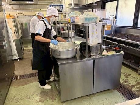 老人ホーム厨房の食器洗浄