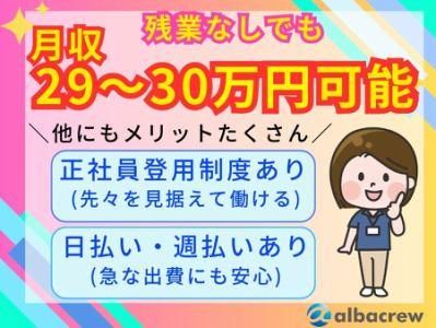 時給1,750円~1,800円 給与詳細 基本給:時給 1750円 〜 1800円 \お好きな方お選びいただけます/ ⭐時給1750円+交通費全額支給 ※残業時は時給2187円以上 ⭐時給1800円(交通費なし) ※残業時は時給2250円 【給与例】 給与例 \収入例をご紹介❗/ 【時給1750円の場合】 時給1750円×8時間×21日 =月収29万4000円+交通費全額支給 【時給1800円の場合】 時給1800円×8時間×21日 =月収30万2400円 ★どちらも残業なしでもしっかり稼げる❗