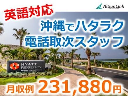 仕事内容 ////////////////////////////////// <必見ポイント> ✅得意な英会話が活かせるお仕事 ✅1回の通話時間は約1~2分程 ✅残業もクレームもほぼなし ////////////////////////////////// 恩納村のホテル内で外線電話の対応や、 ご宿泊中お客様からの施設に関するお問合せにご対応いただきます。 マニュアル通りに回答するか、 担当部署に取り次ぐことがメインなので、 ビジネスレベルの英会話が出来なくてもOK! 【問合せ例】 お客さま「プールにタオルはありますか?」 オペレーター「プールサイドにご用意しております!」 その他に、 ・レストランの予約をしたい ・部屋のリクエストをしたい ・アメニティを持って来て欲しい など、問合せは約1-2分で対応完了するようなシンプルな内容ばかりです。 【入社日・時間】 ■入社日 ┗相談可能:初日勤務時間は9:00~18:00 ■研修 ┗10日間:勤務時間に応じて研修実施 ※その後は個々の進捗による ■入社初日の研修場所は、勤務地とは異なります。 ┗うるま市州崎14-18 沖縄IT津梁パーク 企業立地促進センター ■試用期間 ┗入社~翌々月末 ※上記は仮であり、採用決定時に正式な期間をお伝えします ////////////////// <電話でのお問い合わせ> 0120-921-451(採用担当)まで 営業時間:平日/9:00~18:00 //////////////////
