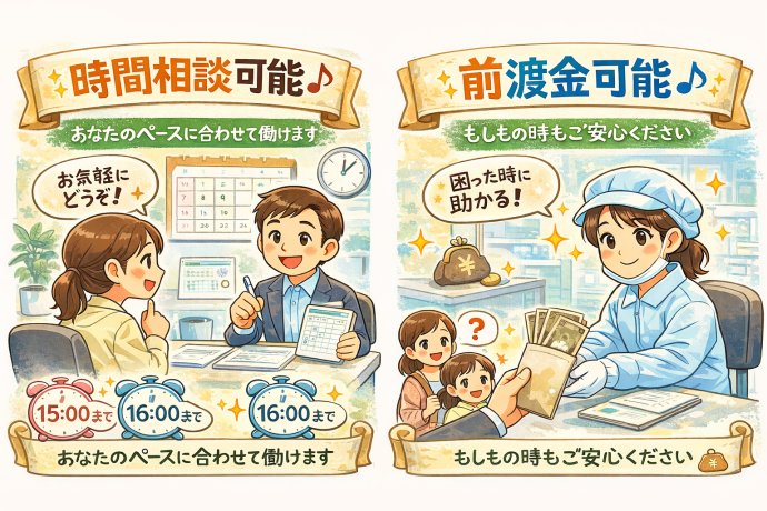 仕事内容 【仕事内容】 「工場の仕事って大変そう…」 そう思っていた方も、意外と続いているお仕事です。 作業内容はあらかじめ決まっていて、 毎日ほぼ同じ流れで進めます。 クリーンルーム内で、 小型部品の見た目チェックをお願いします。 見るポイントは ・キズがないか ・汚れが付いていないか ・欠けやズレがないか など、決まった項目だけ。 検査リストを見ながら進めるので、 「何をすればいいか分からない」 ということはありません。 細かい部分は 拡大鏡やモニターを使って確認します。 目を近づけすぎたり、 無理な姿勢で作業する必要はありません。 作業は基本的に座り作業。 立ちっぱなしや重たい物を持つこともほとんどなく、 落ち着いてコツコツ進められます。 空いた時間に 簡単な清掃や整理整頓をお願いすることもありますが、 あくまで軽作業です。 【こんな方に向いています】 ・もくもく作業が好き ・バタバタした職場はちょっと苦手 ・人間関係で疲れたくない ・体に無理のない仕事を探している ・久しぶりの仕事で、まずは軽めから始めたい 実際に働いているスタッフも、 「工場は初めてだった」 という方がほとんどです。 【この仕事の“ちょうどいい”ポイント】 ・覚えることが少なく、慣れやすい ・毎日同じ流れで気持ちが楽 ・静かで落ち着いた環境 ・少人数で質問しやすい ・分からないまま任されることはありません 「思ったより気楽だった」 という声もよく聞きます。 【応募について】 いきなり応募するのは不安… そんな方も大丈夫です。 ・ちょっと話を聞いてみたい ・作業内容をもう少し知りたい ・見学してから決めたい 全部OKです。 応募=すぐ働く、ではありません。 「自分に合いそうか」を確認するだけでも大歓迎です。 【担当者より】 時給だけを見ると、 もっと高い仕事もあるかもしれません。 でも、 「気を遣いすぎなくていい」 「無理なく続けられる」 という理由で選ばれている職場です。 少しでも気になったら、 深く考えずに、まずはご連絡ください。 ◇ここもチェック!◇ 急募 即日勤務OK 友達と応募OK 主婦・主夫活躍中 フリーター活躍中 ブランクOK 40代以上応募可 学歴不問 未経験者活躍中 経験者活躍中 研修あり 禁煙・分煙 勤務開始時期調整 車通勤OK 長期 週4以上OK 残業なし 平日のみでOK 長期休暇あり