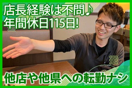 <転勤なし>店長経験不問!飲食経験を活かしてキャリアUPも歓迎します◎年間休日115日で安定勤務!