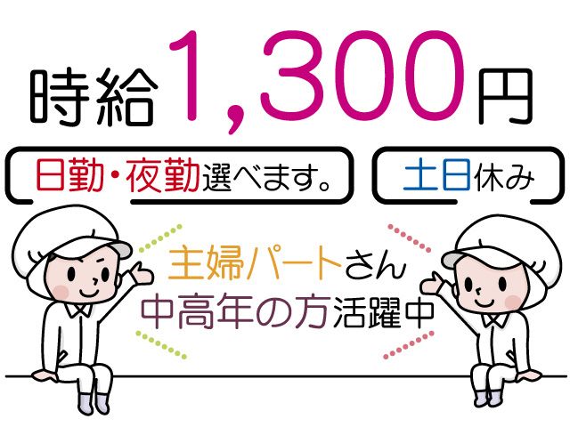 日勤・夜勤選べる/日勤は学校行事や急なお休みも対応/主婦パートさん活躍中/工場ワークデビューOK