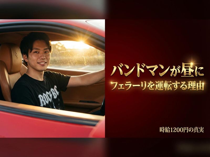 仕事内容 【居酒屋バイトを辞めた日、俺の音楽は生き返った】 朝9時。 エンジンをかける。 今日はBMWの3シリーズ。 カーステレオから自分のバンドの デモ音源が流れる。 昨日スタジオで録ったやつ。 運転しながら、Aメロの歌詞を直す。 18時に仕事が終わる。 19時にはスタジオに入ってる。 体力も気力も残ってる。 半年前までは、こんな生活 想像もできなかった。 ━━━━━━━━━━━━━━━ 居酒屋バイト時代の話をする ━━━━━━━━━━━━━━━ 24歳。バンドマン。 週5で居酒屋。17時〜終電まで。 「生中3つ!」「枝豆まだ?」 「すみません灰皿!」 酔っ払いに絡まれる。 店長に怒鳴られる。 閉店後の掃除が終わるのは深夜1時。 帰宅は2時。 シャワー浴びて寝るのが3時。 起きるのが昼の12時。 午後、やっと起きてギターを触る。 でも指が動かない。 昨日の疲れが全然抜けてない。 「今日はいいや」 この言葉を何回言っただろう。 金土は絶対シフトに入れと言われた。 ライブは金曜の夜が多い。 「すみません、金曜休みたいんですけど」 「無理。人いないから」 ライブをキャンセルした。 メンバーに「すまん」って連絡した時、 自分が何やってるのかわからなくなった。 音楽のために東京(大阪)に出てきたのに、 居酒屋のために音楽を犠牲にしてる。 本末転倒だって、 わかってるのにやめられなかった。 だって金がないと生きていけないから。 ━━━━━━━━━━━━━━━ 転機は、対バンのボーカルの一言 ━━━━━━━━━━━━━━━ ある日、対バンのボーカルに聞いた。 「お前、バイト何してんの?」 「車を運転して届ける仕事」 「何それ?」 「高級車をオークション会場から 指定の場所まで運転して届けるだけ。 9時〜18時で終わり。土日祝休み。 残業なし。ひとり作業」 「……マジで?」 「しかもBMWとかポルシェ乗れる。 運転してる間、新曲のメロディ 考えたりしてる」 その夜、家に帰ってすぐ検索した。 ━━━━━━━━━━━━━━━ 面接で言われた一言 ━━━━━━━━━━━━━━━ ウェブ面接。15分。 スマホで自宅から。 「バンドやってるんですね。 全然いいですよ。 うちは18時で終わりだから、 夜は好きに使ってください」 この一言で決めた。 居酒屋では「バンドやってます」 なんて言えなかった。 「いつ辞めるかわからない奴」 って思われるのが怖かった。 ここでは、夢を持ってることを 否定されなかった。 それだけで十分だった。 ━━━━━━━━━━━━━━━ 入社してからの変化 ━━━━━━━━━━━━━━━ 最初の1ヶ月は先輩の横乗り。 ルートの覚え方、車の扱い方、 段取りの組み方を教わった。 正直、覚えることは多かった。 ナビの使い方、車種ごとの注意点、 書類の確認手順。 でも居酒屋のホールより 100倍マシだった。 なぜなら、ひとり作業だから。 誰にも怒鳴られない。 酔っ払いに絡まれない。 「笑顔!笑顔!」って言われない。 車の中は自分だけの空間。 音楽を聴きながら運転する。 信号待ちでメロディを口ずさむ。 頭の中で歌詞を組み立てる。 仕事中に、曲が1曲できたことがある。 ポルシェのハンドル握りながら サビのメロディが降りてきた。 居酒屋で「生中お願いします!」 って叫んでた時間が、 今はこうなってる。 ━━━━━━━━━━━━━━━ 正直、最初キツかったこと ━━━━━━━━━━━━━━━ 朝9時出勤。 これが一番キツかった。 バンドマンの生活リズムは夜型。 深夜2時に寝て昼に起きる生活を 何年も続けてたから、 最初の2週間は地獄だった。 でも慣れた。 人間、1ヶ月あれば生活リズムは変わる。 むしろ朝型になったことで 1日が長くなった。 18時に仕事が終わって、 スタジオに入って、 22時に帰っても、まだ余裕がある。 深夜バイトで体力を削られてた頃より はるかに音楽に集中できてる。 ━━━━━━━━━━━━━━━ 得たもの、失ったもの ━━━━━━━━━━━━━━━ 【得たもの】 ・平日固定で生活リズムが安定した ・土日祝が完全フリーになった ・18時以降のエネルギーが残るようになった ・ライブのためにシフト交渉する必要がなくなった ・BMWやポルシェを運転する経験 ・「バイト何してるの?」で話のネタになる ・精神的な余裕(ひとり作業で消耗しない) 【失ったもの】 ・深夜のダラダラした時間(なくなってよかった) ・居酒屋のまかない(ちょっと惜しい) 正直、失ったものが思いつかない。 ━━━━━━━━━━━━━━━ 今、俺の1日はこうなってる ━━━━━━━━━━━━━━━ 7:30 起床。シャワー。朝飯。 9:00 出勤。点呼。今日の配車確認。 9:30 オークション会場で車両引取。 今日はベンツのCクラス。 自分のバンドの曲を流しながら回送。 12:00 昼休憩。公園のベンチで弁当。 歌詞ノートを開いて2番のサビを考える。 13:00 午後の回送。フェラーリ。 エンジン音がヤバい。テンション上がる。 17:30 帰社。日報を書いて終了。 18:00 退勤。 19:00 スタジオイン。 今