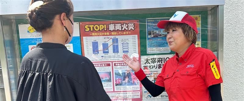 九州自動車道 基山パーキングエリアでの清掃スタッフ