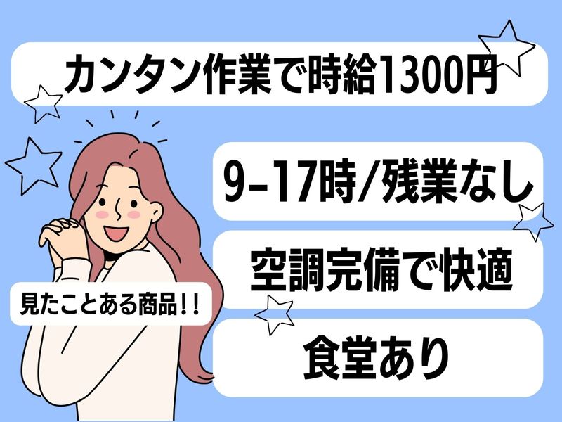 アピールポイント: =================== 入社時の特別支給「サクッと1万」開始 入社初日に「入社特典」をゲットしよう! 配属されたその場で「現金1万円!」 気になったらお気軽にお問い合わせください! =================== *働きやすい環境です* * 未経験OK * 残業なし * 日勤・土日祝休み * 空調完備で快適・クリーンな職場 * 作業服貸与 * 食堂あり * 休憩スペース・ロッカーあり * 無料駐車場あり <日払い・週払い利用OK> \まるで毎日が給料日/ \\利用者急増中// \アプリで簡単申請/ お気軽にご相談くださいね!