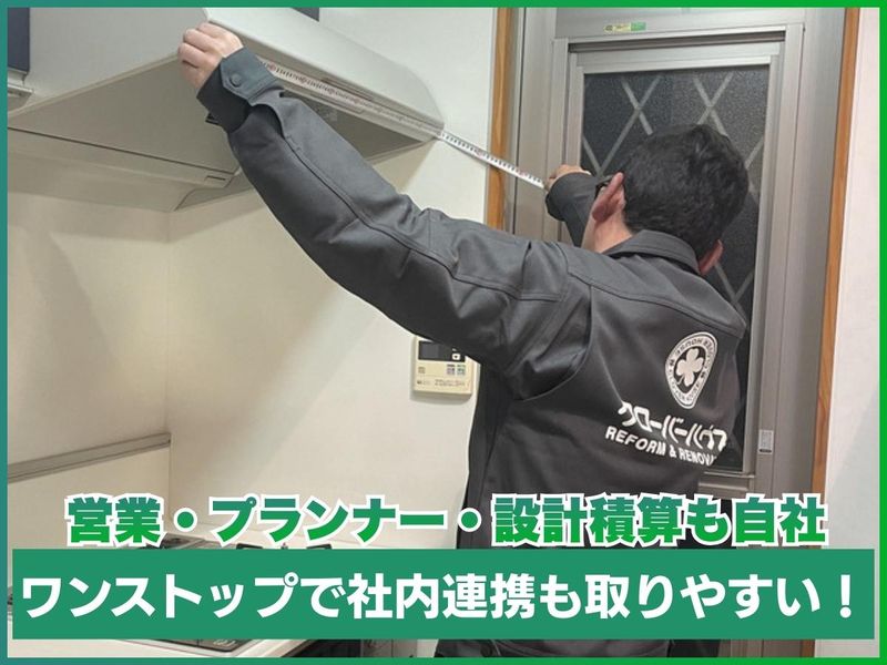 職場環境 「幸せの持続する住まいの提案」 をモットーに、北摂地域に密着した トータルリフォームや リノベーションを展開する会社です。 ▽HPも是非ご覧ください!▽ https://www.cloverhouse.net/ 喫煙所:喫煙所あり(屋外)