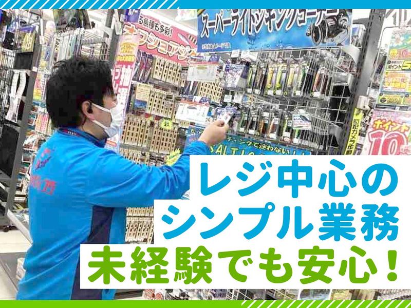 職場環境 釣り好きのスタッフが多く、 趣味の話で盛り上がることもある 明るい職場です。 社員が常駐しているため 分からないこともすぐ相談可能。 未経験の方や副業の方も 安心して働ける環境です。