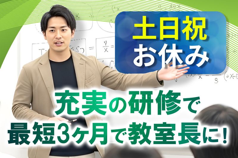 【応募資格】 【教える力を動かす力へ】 教えることの先にあるのは、人を動かす教育。当社では、誰もが自ら考え、行動できる環境づくりを大切にしています。 ■必須条件 ・大学、大学院卒以上 ・塾講師や家庭教師などの勤務経験 ・塾業界での勤務経験(アルバイトも可) ■優遇条件 ・教室長や副教室長のご経験 ・塾講師として2年以上の指導経験 ・教員免許や教育関連資格をお持ちの方 【採用担当の想い】 教室を良くするのは、システムでもマニュアルでもなく「人」。だからこそ、私たちはコミュニケーション力を重視します。講師の意見を聞き、生徒の悩みに気づき、保護者と信頼を築く。 そんな「現場のハブ」になれる人が、生徒もスタッフも笑顔にできると、私たちは信じています。 【メリット】 #即日勤務OK #経験者歓迎 #リモート面接OK #社会保険完備 #研修あり #昇給あり #賞与あり #交通費支給 #長期休暇あり #新卒歓迎 #第二新卒歓迎 #勤務開始時期調整 #残業月平均20時間以内