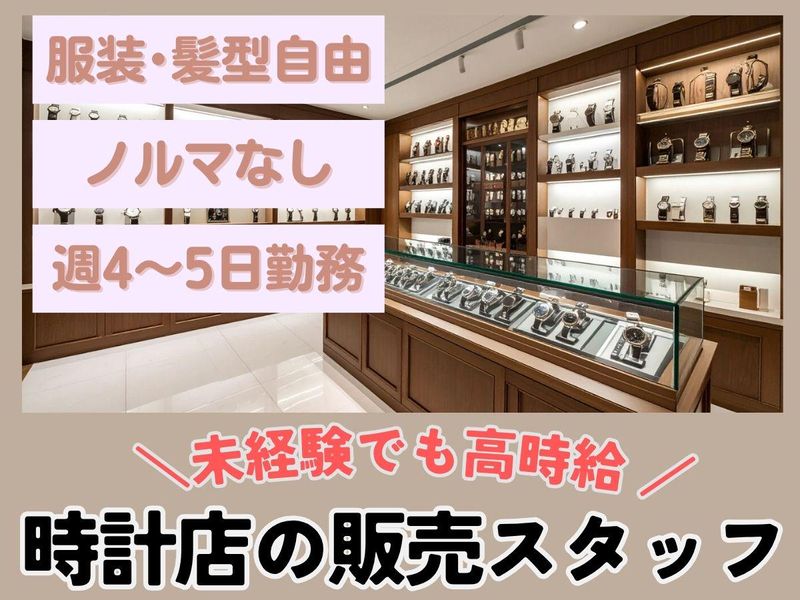 仕事内容 ✦・┈┈┈┈┈ ・✦✦・┈┈┈┈┈ ・✦ ⭐大型モール内での安心勤務/車通勤◎ ⭐週4~5日/柔軟シフト・時間相談可❗ ⭐3ヶ月以上の長期❗定着率抜群❗ ✦・┈┈┈┈┈ ・✦✦・┈┈┈┈┈ ・✦ <ノルマなし!時計販売スタッフ> ゆめタウン倉敷店の店舗で 笑顔と会話を楽しみながら働けます! -✄ 《具体的なお仕事内容》 ✅店頭での接客・商品説明 ✅時計の修理受付(電話・来店対応) ✅商品陳列やレジ対応、閉店作業など ◎お会計は自動精算レジなので安心! セリオのスタッフも同店舗で活躍中♪ 困ったときもすぐに相談できる環境です ◎時計やアクセサリーが好きな方に ぴったり!セレクトショップなので いろいろなブランドに触れられます♪ ◎イチから丁寧に教えるので 販売・接客未経験の方も 安心してスタートできます! ✦・┈┈┈┈┈┈┈┈┈┈┈┈┈┈ ・✦ 《働きやすさのポイント》 ⭐急な予定変更やお休みにも柔軟対応♪ 子育て中の方も安心! ⭐ショッピングモール内だから お仕事後にお買い物も◎ ⭐通勤方法いろいろ♪ 送り迎え後の出勤もスムーズ! ⭐高時給&交通費支給で安定収入が叶う