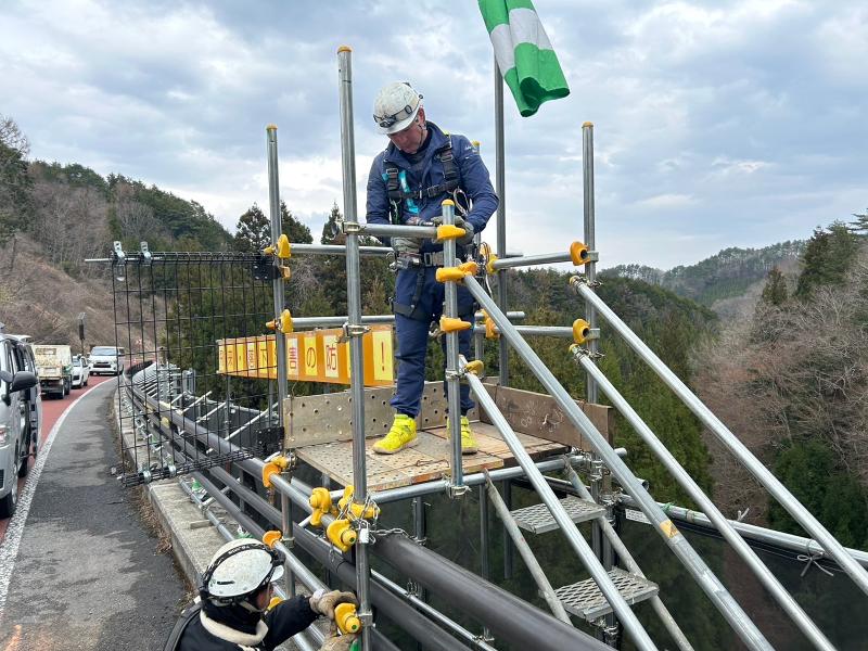 仕事内容: お電話での問い合わせもOKです! 0246-63-4417(担当:森谷) 【仕事内容】 工事現場では高い場所や危ない場所でも 安全に作業できるよう、まわりに「足場」という ジャングルジムみたいな台を組み立てます。 特に橋の工事では、地面がない場所も多いため、 職人が立てるように足場を横へ横へと広げていく 特別な技術が必要です。 この足場を作るのが 鳶(とび) の役割ですが、 まずアシスタントとして道具運びや 簡単な補助作業から はじめます。 慣れてきたら、足場の組み立てや 工事後の解体にも少しずつ挑戦していきます。 足場は最後には外されますが、 足場がないと工事は一歩も始まらない、 とても大切な仕事 です。