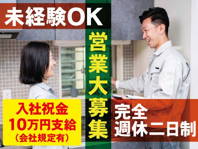 入社祝金10万円!ノルマなし! 未経験OKの営業のお仕事! 完全週休2日制&定時退社!社員寮完備