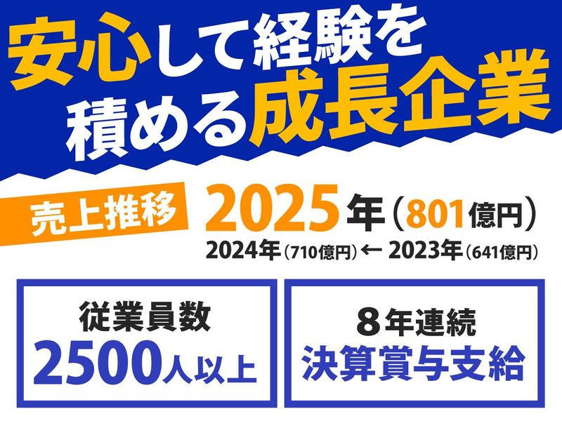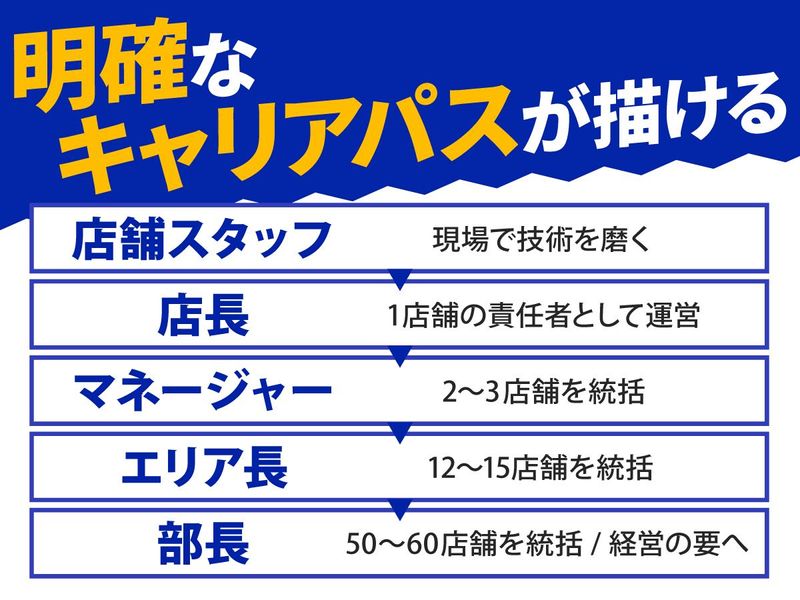 仕事内容 「自分にもできるかな」という不安も、 私たちが丸ごと受け止めます。 家具家電付きの寮と丁寧な研修で、 あなたの新しいスタートを全力で応援させてください! \**\この求人のポイント /**/ ✅固定費を削減!家具家電付き寮が月3,000円〜 ✅未経験から1〜2年で「店長」へ昇格可能 ✅地域密着!エリアを跨ぐ転勤なしで安定勤務 ✅直近8年連続で「決算賞与」を支給中の安定経営 ✅安心の環境! 交通費規定支給(月4.1万円迄)、制服貸与、健康診断 ✅結婚・出産お祝い金、誕生日プレゼント支給! ✅社員旅行や、アメリカ・タイ等への海外研修あり! 【具体的になお仕事】 ディスカウントストア内(ダイレックス)の 精肉コーナーにて、店舗運営全般をお任せします。 ✅接客・調理: お肉のカット、パック詰め、値付け、売場づくり ✅店舗管理: 売上管理、商品の発注・仕入れ、販促企画の立案 ✅マネジメント: パート・アルバイトスタッフの採用や教育 【会社の規模・成長感:将来への安心感】 当社は年間30店以上のペースで新規出店を続けている成長企業です。 ✅売上推移: 2025年(801億円)←2024年(710億円)← 2023年(641億円)← 2022年(580億円)と右肩上がり。 ✅従業員数: 2,500人以上の大規模組織で、福利厚生も充実しています。 【入社後の流れ:未経験から「肉のプロ」へ】 「包丁を握ったことがない」という方も、2ヶ月〜半年の丁寧なOJT研修でサポートします。 ✅基礎研修: 商品の陳列やパック詰めなど、簡単な作業からスタート。 ✅技術習得: スライサー等の機械操作や、肉の切り分け技術をイチから伝授。 ✅店長昇格: 早ければ半年〜2年で店舗責任者へ。経営ノウハウも学べます。 【明確なキャリアパス:将来のビジョン】 社歴に関わらず、意欲次第でどんどんステップアップできる環境です。 ✅店舗スタッフ: まずは現場で技術を磨く。 ✅店長: 1店舗の責任者として運営を担う。 ✅マネージャー: 2〜3店舗を統括。 ✅エリア長: 12〜15店舗を統括。 ✅部長: 50〜60店舗を統括する経営の要へ。