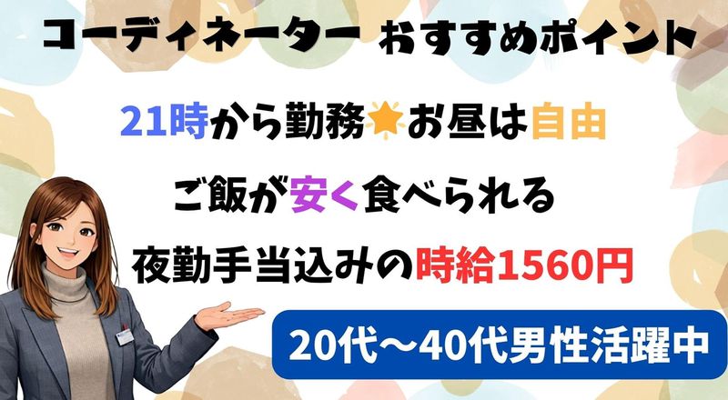 求めている人材 ■学歴・資格不問 ✨こんな方、大歓迎!  ̄ ̄ ̄ ̄ ̄ ̄ ̄ ̄ ̄ ̄ ̄ ̄ ̄ ̄ ■未経験の方 ■中卒、高卒の方 ■フリーターの方 ■ブランクのある方 ■早起きが苦手で夜型の生活を されている方 年齢の条件と理由:あり(例外事由2号・18歳以上(労働基準法))