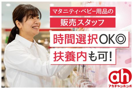 資格 ・土日いずれかの勤務ができる方(事前の休み相談OK) ・継続して1年以上勤務が可能な方 ・販売経験者歓迎/未経験でも大歓迎 ・フリーター、主婦(主夫)活躍中 (元保育士や教育関連職種の経験者も多数在籍中) ・20代、30代、40代、50代活躍中 ・中高年・ブランク応援! ・学歴不問、職種未経験、業界未経験、社会人未経験歓迎 ・女性活躍中!! 【アカチャンホンポとは】 マタニティ用品、出産準備用品、育児用品をはじめとした商品を 豊富に品揃えする、マタニティ・ベビー・キッズ用品専門店。 また、総合的な子育て総合支援企業を目指し、 子育て支援サービスにも力を入れています。