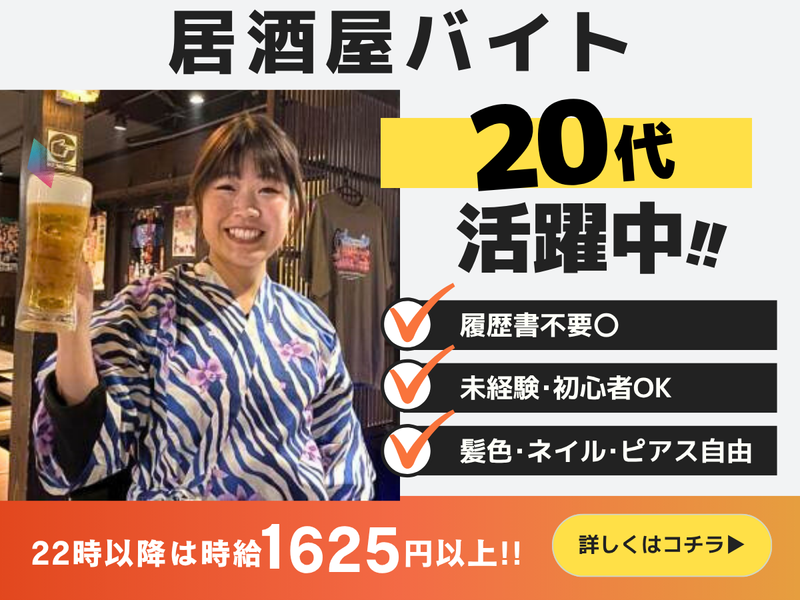 仕事内容 ――――――――――――――――★。・ シフトは半月毎の自己申告制♪ 20代の学生・フリーター中心に活躍中! ・。★―――――――――――――――― ★彡☆彡★彡☆彡★彡☆彡★彡☆彡 ⭐履歴書不要!私服でお越しください! ⭐春から新大学生もOK◎ ⭐22時以降は高時給1625円~ ⭐週1日~、1日3時間~OK! ⭐22時以降だけのシフトも大歓迎! ⭐嬉しい給料手渡し現金支給! ⭐バイトデビューも大歓迎! ★彡☆彡★彡☆彡★彡☆彡★彡☆彡 【仕事内容】 ・接客対応 注文を受け、料理のオーダー等 ・飲み物・料理の配膳 ・ドリンク作り ・レジ対応など まずはメニューを覚える事から♪ ほとんどが未経験からスタート! 先輩がしっかりフォローするので安心です。 スタッフ同士の仲の良いので、 初バイトの方も安心してご応募ください! 友達同士の応募もOK♪ がっつり稼ぎたい・働きたい方は 週5日フルタイム勤務もOK♪ \ こんな経験も活かせます / コンビニスタッフの経験がある カフェやレストラン・バーやパチンコ などで接客経験がある ================== 【交通アクセス】 「日ノ出町駅」より徒歩1分! 横浜駅、関内駅、桜木町駅、戸部駅、 伊勢佐木長者町駅、黄金町駅などからも 交通アクセス便利です♪