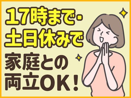 勤務時間 9:00~17:00(休憩1時間) ※週5日勤務 ※基本的に残業なし