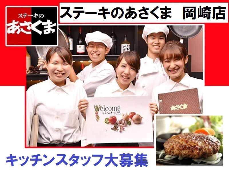 仕事内容 ・。~~~~~~~~~~~~~~~~~ ✨ステーキのあさくま 岡崎店✨ 春の増員募集! 学生さんのアルバイトデビュー・ 主婦・主夫さんのパートデビュー応援! 新年度が始まる前の 余裕のあるタイミングに頑張れば 仕事も早く覚えられる◎ しっかり稼げて一石二鳥♪ ~~~~~~~~~~~~~~~~~・。 盛付・調理補助や惣菜作り、 ビュッフェの補充、洗い場、 清掃などをお願いします。 基本、裏方業務です。 *キッチン専任OK! *ホールと両方やってみたいも相談OK! 飲食店・レストランキッチン勤務経験者、 大歓迎! もちろん未経験も歓迎です!