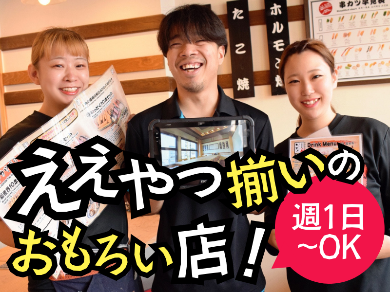仕事内容 阪急「梅田駅」や谷町線「東梅田駅」からスグ! 串カツ専門店でのホール・キッチンスタッフを募集します! ⭐兄弟で! ⭐友人同士♪ ⭐留学生同士 ⭐紹介の紹介 など いろんな境遇の「おもろい」仲間たちが 年齢・性別・学歴一切関係なく のびのびワイワイ活躍中♪ ✨ このお仕事のPoint! ✨ ━━V━━━━━━━━━━━━━━ 〈1〉週1日、3h~短時間OK! 〈2〉飲食デビューOK♪ 〈3〉平日のみ・土日のみ・扶養内もOK♪ ――――――――――――――――― ⏩具体的には ――――――――――――――――― (ホール業務) ・お客様をお席にご案内 ・料理の配膳 ・レジ対応 ・清掃 など (キッチン業務) ・食材のカット ・簡単な盛り付け ・簡単な調理補助 など 飲食デビューや調理未経験も大歓迎! もちろん経験者は優遇いたします! ✅まず始めは… ホール業務は、テーブル番号を覚えるところから! メニューは、配膳しながら覚えていきます。 キッチン業務は、食材のカットからお教えします! 調理の経験はなくてOK!まずはできることから お願いしていきます♪ ――――――――――――――――― ⏩働き方は生活優先で! ――――――――――――――――― 平日17時~24時、土日祝11時~23時の間で 週1日、3h~OK♪ 「大学の合間に」「子供のお迎えまで」 「掛け持ちしながら稼ぎたい!」 などなど、働き方はなんでもOK! 平日のみや土日のみ、扶養内もOKなので まずはお気軽に面接にてご相談してくださいね! ――――――――――――――――― ⏩美味しいまかないも! ――――――――――――――――― 串カツのまかないが食べられます! 休憩が被った時には、料理上手な社員スタッフが まかないリクエストに応えてくれることも♪ ――――――――――――――――― ⏩一緒に働くスタッフについて ――――――――――――――――― 大学生さんや専門学生さん、 子育て中の主婦さんやWワークで働く フリーターさんが活躍中! ベトナムやネパールの留学生さんも活躍しています。 お客様は地元の方や海外の観光客の方が多く、 語学の勉強にもなりますよ! ――――――――――――――――― ⏩スタッフインタビュー ――――――――――――――――― 大学と両立しながら働きたいと思い、 いっとくに応募しました。 飲食の経験は全くなかったのですが、 未経験でもわかるようなきっちりとした研修や 店長や社員さん、先輩が近くに居るので スグに聞けてとても働きやすいです。 髪色も自由だし、まかないも食べられるので 食費も浮いて助かっています。 地方から出てきて、いろいろなバイトを 経験しましたが、うちが大阪に出てきて はじめて「楽しい」と思えたバイト先です。 これからも長く続けたいと思います。 (20代スタッフ) ――――――――――――――――― ⏩いっとくについて ――――――――――――――――― 当店は大阪市内に14店舗展開中! 美味しい串カツを提供しています。 近くのお店にヘルプに行ったり、飲み会で 交流したりするほど、店舗を越えて仲良し♪ フレンドリーな人が多く、垣根も一切ございません! ぜひ、お気軽にご応募ください♪ ▼ ☆面接時の【履歴書不要】 ☆TEL応募可能⇒【0669206077】 ☆私服面接OK!