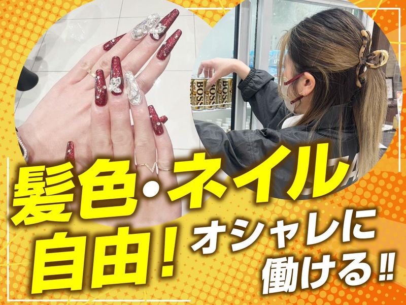 求めている人材 ●未経験歓迎 ●学生歓迎 ●フリーター歓迎 ★フルタイムで働ける方大歓迎! ★幅広い年代のスタッフが活躍中 ・どんな方でもすぐに馴染める環境 ・気さくな店長や頼りになる仲間が在籍 ・定着率が高く、雰囲気の良い職場 ・それぞれの個性や強みを活かして働ける ・分からないことはすぐに先輩に聞ける安心のサポート体制 <こんな経験をお持ちの方歓迎します!> ●接客の経験がある方 ●コミュニケーションをとるのが好きな方 ●髪色やネイルなどオシャレをしながら働きたい方 ●高時給でしっかり稼ぎたい方などなど 一番は「人柄重視」の採用♪ 経験よりもあなたの「やってみたい!」の気持ちを 大切にします◎ 年齢の条件と理由:あり(例外事由2号・20歳以上 (風営法のため))