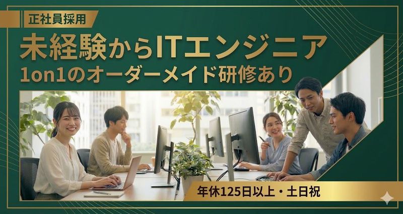 仕事内容 「エンジニアって難しそう…」「残業ばかりで大変そう…」 そんなイメージを180度変える、エンジニアの理想を全部詰め込んだプロジェクトが始動します。 🌟 ここが「最強」!この求人のポイント * 【教育】最大6ヶ月のフルリモート研修からスタート!未経験でも実戦レベルへ。 * 【生活】家賃の1/3を補助! さらに1食150円の社内弁当や独身寮・社宅も完備。 * 【休日】年間休日125日&土日祝休み。 残業は1日30分程度(月平均12h)。 * 【夢】 AI、自動運転、VRなど、ドラマや映画のような最新技術に携わることができます。 * 【健康】24時間スポーツジムが無料! 体も心もリフレッシュ。 💻 仕事内容:あなたの「なりたい」を叶える場所 まずは最大6ヶ月間の研修で、基礎の基礎から学びます。 その後、あなたの希望や適性に合わせたプロジェクトに参加していただきます。 【プロジェクトの例】 * 最先端分野: AIを活用したシステム、車の自動運転技術の開発 * エンタメ: VR(仮想現実)やARを使った新しいWebサービス * 社会貢献: 介護・福祉現場を支えるシステムや、官公庁のポータルサイト * 生活支援: スマートフォンで使える便利なアプリや販売管理システム 「やりたいことがわからない」でも大丈夫! 豊富な案件の中から、あなたのライフスタイルや「やってみたい」に合わせて一緒に選んでいきましょう。 🎁 驚きの手厚さ!待遇・福利厚生 「技術だけじゃない。生活も豊かに」が私たちのモットーです。 ・家計の味方 住宅手当(家賃の1/3補助)、社宅・独身寮完備 ・食事支援 1食150円の社内弁当(ランチ代を節約!) ・お祝い金 資格を取ると最大15万円支給(勉強が楽しくなる!) ・ご褒美 年1回の社員旅行(北海道や温泉地)、海外視察あり ・家族手当 配偶者や子ども、親への扶養手当も充実 ・スキルアップ 書籍購入、セミナー参加費、資格受験料は会社が全額負担 🕒 働きやすさ(ワークライフバランス) エンジニアが疲弊する環境はもう古い。私たちは「ホワイト企業認定」を取得しています。 * 年間休日:125日(土日祝休み+長期休暇もしっかり) * 残業:月平均12.3時間(プライベートも充実!) * 柔軟なスタイル: 在宅勤務(リモート)やフレックスタイム制(出社時間をずらせる制度)も相談OK。 * 有給取得率:92%! 休みづらい雰囲気は一切ありません。