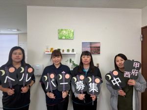 応募方法 ここまでお読みいただきまして、ありがとうございます。 ご応募は『応募ボタン』または『お電話』にてお願いいたします。 <応募ボタン> 受付時間…24時間受付中!! ※ご応募内容を確認後、折り返しご連絡をさせていただきます。 <お電話> 受付時間…8:30-17:30(土日祝祭日除く) <採用選考スケジュール> ①応募 ↓ ②面接 ↓ ③内定 ※応募後、面接への日程調整をさせていただきます。 ※ハローワークでお仕事をお探しの方も対象です。 ※入社日も応相談ですので在職中の方も、まずはご相談ください。 ※お仕事内容の詳細を聞いてから面接するかどうか検討することも可能です。 【会社概要】 会社名:株式会社やさしい手甲府 事業内容:介護事業 本社:山梨県甲府市上石田1-7-14 社員数:常勤社員220名、ケアスタッフ800名 URL:https://www.yasashiite-kofu.co.jp/ 担当 やさしい手甲府 本部人事課 採用担当 応募先電話番号 055-223-3003
