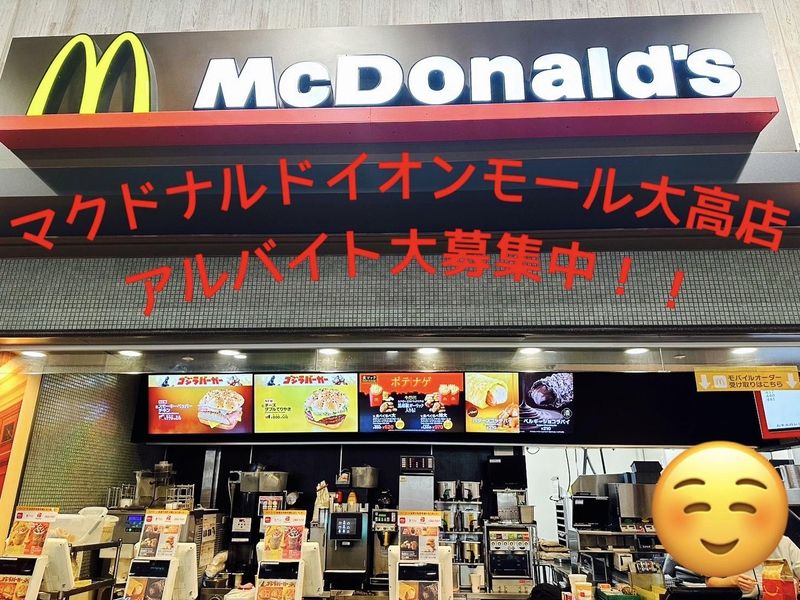 仕事内容 \リニューアルオープンに向けた オープニングスタッフ大募集!!/ ★2025年12月中旬にリニューアル予定! ★週1日~・1日2h~OK!学業との両立◎ ★高校生・大学生・定年後のシニアの方も活躍中♪ <おすすめポイント> ◆未経験者歓迎!バイトデビューも応援♪ 1ヶ月~のお試し勤務もOK! ◆シフト融通!学業や家庭との両立も◎ 週1日~・1日2h~OKなので、短時間勤務やスポット勤務も可能! 1週間ごとのシフト提出&アプリからのラクラク申請で予定も立てやすい♪ ◆昇給チャンスあり♪ リニューアルしたばかりの新しい店舗なので、時給UPのチャンス多数! トレーナーやマネージャーなどにも昇格しやすい環境です! 頑張って働くアナタを応援します♪ <お仕事内容> ■接客・カウンター ┗セルフオーダー機の使い方のご案内、 レジでの注文伺いや接客、商品のお渡しなど。 ドリンクやソフトクリーム作りもお願いします。 ■キッチン ┗ハンバーガーやポテトの調理を中心に、 食材やポテトのケースなど資材の補充をお願いします。 ■清掃など ┗厨房や客席の掃除や消毒作業、 ゴミ出しなど。 その他にもカウンターからお客様へ商品のお渡しをお願いします。 初めての方でも活躍できるように、 お仕事はしっかりと丁寧にお教えしますので 安心してくださいね◎ どのお仕事をメインにお任せするかは ご本人の希望と適性を考慮し決めていきます。 何でもお気軽にご相談ください♪ <学生さん・シニア世代の方も活躍中!> マクドナルド イオンモール大高店では、 学生スタッフさんが多数活躍中! スタッフの半数が学生さん(高校生3割・大学生2割)なので、 アルバイトを通じて新しい友達と出会えるチャンスも♪ 定年を迎えたシニア世代の方も在籍しており、 定年後の時間を活用して 「まだまだ活躍したい!」というシニアの方も応援しています!