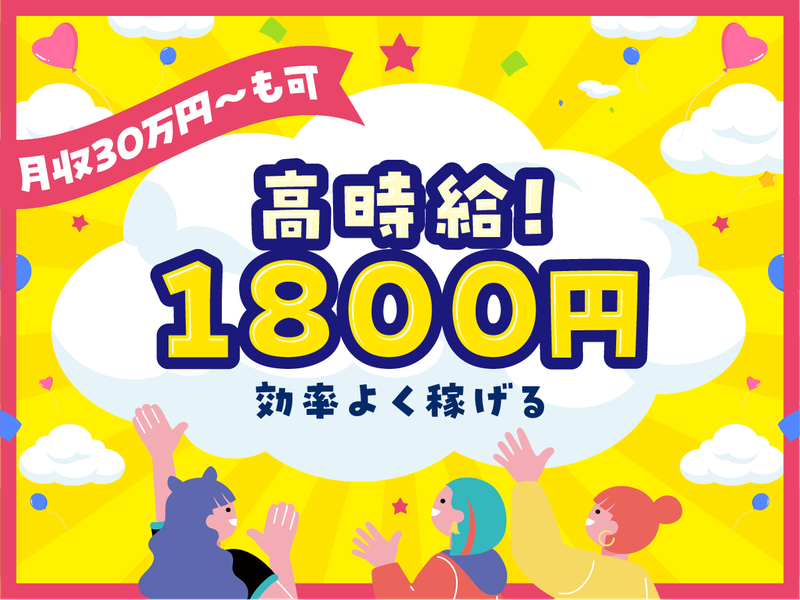 時給1800円×3月だけの短期!月収30万円以上可♪土日祝休