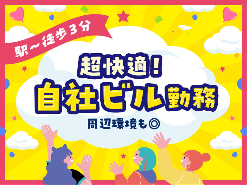 【保険制度】 労災保険 待遇・福利厚生 【福利厚生】 ・賃金は月末締め翌月15日支給 ・車通勤通勤可(規定有) ・喫煙専用室設置(紙たばこ専用/電子たばこ専用あり) ・服装カジュアルOK(髪型・髪色・ネイル・アクセサリーOK) 【車通勤可能&駐車場完備!】 バス~地下鉄の乗り換えがある方や自宅から遠い方、お子様の送り迎えがある方など、車でラクラク通勤可能です♪ 【2020年度グッドデザイン賞を受賞の自社ビル】 食堂完備&中庭もあり、リフレッシュ出来る職場環境!喫煙室も完備しています。