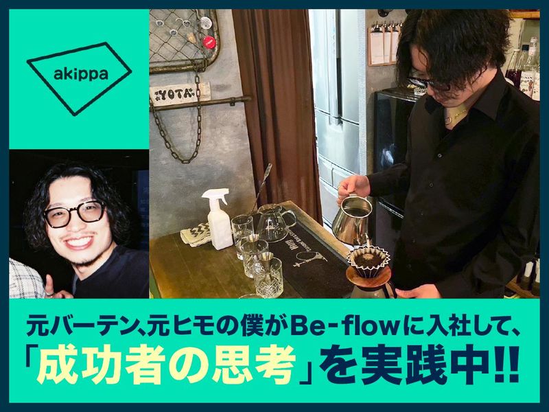 仕事内容 お任せするのは「アキッパ」で 案内できる駐車場を増やすお仕事! 登録ユーザー4万人超の人気サービス。 実は、ストックビジネスで、 ”かなり”稼げるお仕事なんです。 ▛▝▝▝▝▝▝▝▝▝▝▝▝▝▝ ▜ 入社4年の足立は、 すでに年収1000万円越え。 ほかのメンバーも営業未経験で 入社しており出身は様々。 自衛隊、教師、内装工…etc. みんな入社5ヶ月以内に 月収50万円を実現しています! ▙ ▖▖▖▖▖▖▖▖▖▖▖▖▖▖▟ \さて、写真1枚目にご注目! 今回ご紹介するのは… / ▶▶営業未経験の「大窪」(23歳) ▌入社して1ヶ月目に「ヒモ」脱出!  ̄ ̄ ̄ ̄ ̄ ̄ ̄ ̄ ̄ ̄ ̄ ̄ ̄ ̄ ̄ ̄ ̄ Be‐flowに入社して、 「成功者の思考」を実践中!!! ▼大窪より もともとは愛知県のカジュアルバーで バーテンとして働いていましたが… オーセンティックなバーも見てみたい、 と、東京で転職活動開始しました。 もちろん、オーセンティックなバーも 面接にいきました。 そのほか、人と接する仕事、 当社を含め、4社から内定をGET! 決め手は「直感!」 面接で、池田社長と直接 話ができたのも決め手です。 お恥ずかしいですが、僕はヒモ体質(笑) 彼女に生活を支えてもらう人生を 変えたい!! 入社1ヵ月目の初任給を彼女に渡し スグにヒモを脱出できました! 次はスマホが欲しいらしい(笑) 何でも買ってやりますよ~ 将来は、自分のお店を出したい! それが僕の今の目標です!! 自分が作る未来のお店で、 一緒に働きたい人ってどんな人?と 聞かれる機会があったんです。 責任感がある 元気で明るい対応ができる リーダーシップがある 誠実で素直 きっと、どんな経営者もそんな人を 求めているはずですよね。 だから僕は、そんな人間に 自分がなると決めました!! まあ、見ててください。 ヒモから逆転ホームラン人生! ✅絶対成功できるノウハウあり ✅営業未経験でも【月給30万円~】 ✅入社祝い金有【60万円支給】 ✅ストックビジネスで【毎月歩合】 ✅全国代理店業績【NO.1】 -【仕事内容】- 「アキッパ」の駐車場オーナー開拓営業。 繁華街やスタジアム、イベント会場付近など 使われていないスペースを見つけて、 駐車場として貸しませんか?と提案。 駐車場不足にも一役買えるお仕事です。 / 所有者さんにも大好評! \ 初期費用や設備は不要、 「個人宅でも事業所でも、 所有地に車一台分のスペースがあれば 費用ゼロ&簡単な登録で、誰でもすぐ 駐車場オーナーになれるんです! 「土日だけ貸し出し」など 自由にアプリで設定できるため、 簡単に利益を出せると喜ばれます。 5つの自治体、 プロスポーツ36チームに好評!! 絶賛提携先拡大中!! \\ // // 全国のアキッパ代理店 No.1のノウハウあり!! // // \\ 「アキッパ」の代理店は全国に 1300社あり、当社はその代理店の一つ。 代理店営業は、総勢約3000名。 その業績TOP5は全員当社のメンバーです。 いまや代理店の中で「売上No.1」。 プロの営業である、代表が ノウハウからマインドをあなたに伝授。 絶対に成功させてくれます。 だから必要なのは、 「絶対に人生を変える、 途中で脱落しない」その気持ちです。 習ったことを実践すればいいだけです。 もちろん、断られることも多く、 街中歩き回り、足が棒のようになることも。 そこでへこたれずに、やるべきことをやる。 それだけで、成功は約束されているんです!