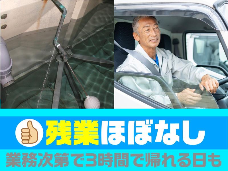 仕事内容 / ★業績好調★ 業務拡大につき増員決定◎ \ 水が通る管や貯水槽など、給排水に関わる さまざまな設備をお掃除するお仕事です。 作業の内容や詳しい業務の流れは 入社後にイチからお教えします◎ 基礎からしっかり学べるので 未経験の方もご安心ください! サービス対象エリアは、 ❏東京都内 ❏千葉県内 ❏埼玉県内 ❏神奈川県内 の、一都三県。 今後も需要がなくなることはない仕事なため 安心して長く働けるお仕事です! 将来に向けて安定したキャリアを 築きたい方にはピッタリな会社ですよ。 ----------------- ■「排水槽清掃」とは? 建築物から排出される 雑排水を貯める場所などを バキューム車で汲み上げて除去し 衛生的環境を確保します。 ----------------- ■「貯水槽清掃」とは? ビルやマンションといった 大型の建物に設置されている貯水槽の 内部を清掃・消毒します。 安全・安心な飲料水や生活用水の確保には 貯水槽の清掃が必要です。 ----------------- ■1日の業務の流れ 中野にある車庫に集合 ▼ 現場へ社用車で移動 ▼ 現場で清掃作業 ▼ 中野の車庫へ戻って解散 はじめは代表が一緒に行動するので、 未経験の方でも安心して下さいね◎ ----------------- ■作業が早く終わっても給与変動なし また、基本は6:00~17:00の間で 1日実働8時間(休憩1時間)ですが 作業が早く終わったらその日は終了♪ 日によって、現場で4時間だけ作業など 早く終わっても、月給制なので 収入が減る事はありませんよ◎ ----------------- ■頑張りはしっかり評価 少数精鋭の企業だからこそ、頑張った分が ダイレクトにしっかり代表へ伝わるので 評価もスピーディー!