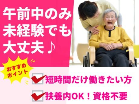 仕事内容 \ここがポイント/ ★未経験歓迎!サポート体制も万全◎ ★午前中のみの短時間勤務OK♪ ★介護度低めで負担少なめ! *・。・。*・。・。*・。・。* <仕事内容> \サービス付き高齢者住宅でのお仕事♪/ 朝のルーティンを中心とした介護補助です◎ ・起床・離床のサポート ・排せつや口腔ケアの介助補助 ・お茶出しや朝食の配膳・介助 ・居室や共有部の清掃 ・簡単な記録記入 など 身体への負担が少ない時間帯が中心♪ 未経験の方でも始めやすい環境です◎ 介護資格や経験がなくてもOK! やさしく教えてもらえる体制あり♪ 早朝のみ・午前だけの勤務も歓迎! ご家庭や予定に合わせて働けます◎ 扶養内で働きたい方も、 フルタイム希望の方も大歓迎です! *・。・。*・。・。*・。・。*