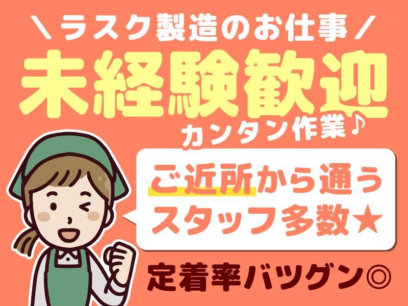 仕事内容 < 工場内でのお菓子作りをお任せします > ☆**ラスクにクリームを塗ったり、 袋に詰めたり、カンタン作業**☆ 大人気のラスクやシリアルバーなどの 焼き菓子を作り続けてきた岩月屋です。 ラスクの製造では一貫して 職人による「手塗り製法」にこだわり、 様々な味のバリエーションを展開。 多くのお客さまからも愛されている、 当社を代表する人気商品です! あなたには、そんな当社の工場内で 様々なお菓子づくりをお任せします。 といっても、ラスクにクリームを塗ったり できあがったお菓子の袋詰めといった 簡単な作業なので安心してください。 未経験の方でスグに活躍できますよ! たまにご褒美として、規格外のラスク などをお持ち帰りすることも! スタッフからも大好評の特典です! 美味しい香りに包まれながら、 マイペースに無理なく働ける環境です。 あなたも地元で腰を据えてみませんか? 【勤務時間】 12:00~17:00 午前中の時間を有効に使えますよ♪