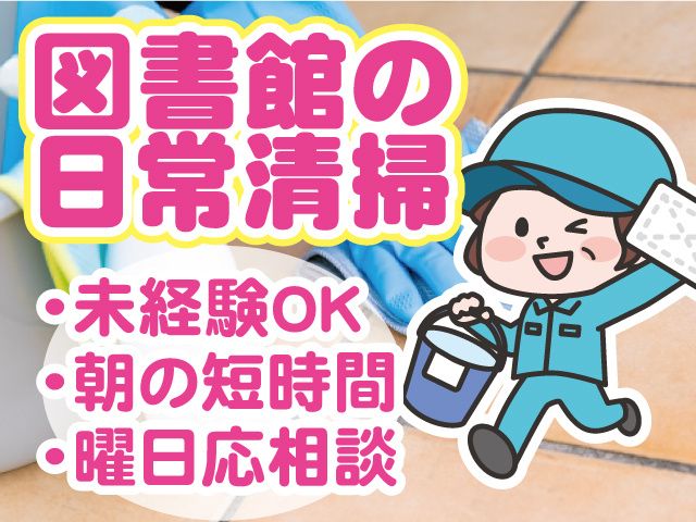 仕事内容 【おすすめポイント】 ・未経験者歓迎 ・朝の2時間30分 ・週5日のレギュラーワーク※曜日相談に応じます ・中高年層(ミドル・シニア層)活躍中 ・女性活躍中 千葉駅周辺の図書館の清掃 ・フロア内の掃き掃除 ・掃除機掛け ・トイレ清掃 ・ゴミ回収 など 清掃員未経験の方であっても安心。 丁寧な研修でしっかりサポートします! 重量物や特殊な機械の扱いもありません。 【朝だけの短時間ワーク】 負担少な目でWワークにもおすすめ! 【幅広い年代の方が活躍中】 スキマ時間に働きたい主婦(主夫)パートさんから 定年退職後に適度に体を動かしながら、少しだけ働きたい方まで幅広く活躍中。 ブランクもOK! Webからはもちろん、お電話でのご応募もOK。 まずはお気軽にご連絡ください。 Tel 047-432-7282