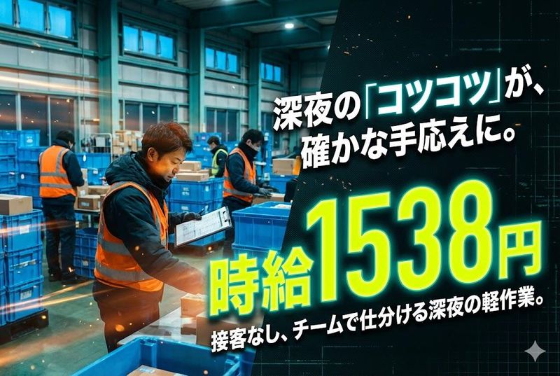 求めている人材 学歴・年齢・経験・資格は一切問いません 。作業内容はシンプルで、しっかりとしたマニュアルも整っているため、未経験の方でも安心してスタートできる環境です 。 \ こんな方にピッタリの職場です / 【日勤・夕方】盛り付けスタッフ 午後からゆっくり働きたい方: 「午前中に家事を済ませてから」「朝はゆっくり寝ていたい」という方に最適です 。 夕飯の支度までに効率よく稼ぎたい方: 19時や20時終業なので、家庭との両立も無理なく可能です 。 久しぶりの仕事復帰を考えている方: 20代〜60代と幅広い世代が活躍しているため、ブランクがある方も馴染みやすい環境です 。 【夜勤】出荷段取り・仕分けスタッフ 夜の時間を有効活用して高収入を得たい方: 深夜時給(時給1,538円)で、効率よくしっかり稼ぎたい方にピッタリです 。 規則正しい生活リズムを作りたい方: 固定シフトで予定が立てやすいため、Wワークや私生活の予定を優先したい方にもおすすめです 。 作業に没頭したい方: チーム作業ではありますが、接客などの対人業務は少なく、コツコツ・モクモクと作業に集中したい方に向いています 。 未経験・派遣デビューの方: 丁寧な研修(2週間/同条件)があり、難しい作業はないため、工場勤務が初めての方も歓迎します 。 安定して長く働きたい方: 大手スーパー向けの安定した仕事量があるため、長期で腰を据えて働きたい方も大歓迎です 。